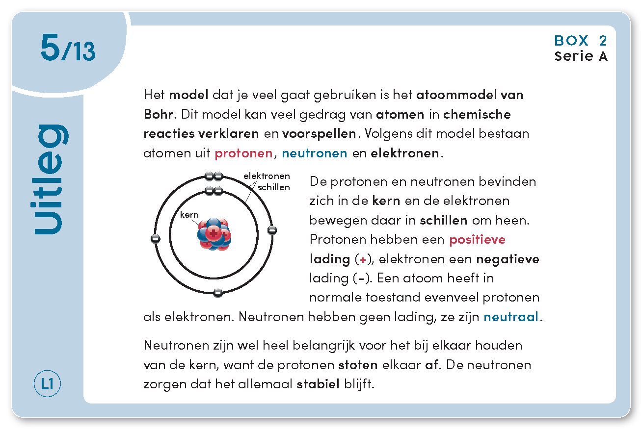 Alle Boxes bevatten experimenten. De leerlingen voeren deze zo veel mogelijk uit voor ze de theorie leren die het fenomeen in de proef verklaart.